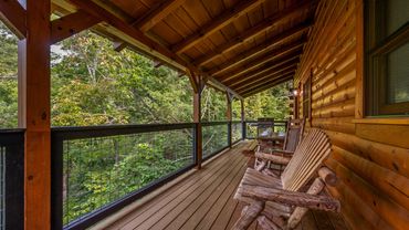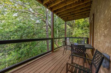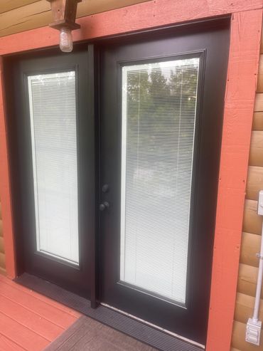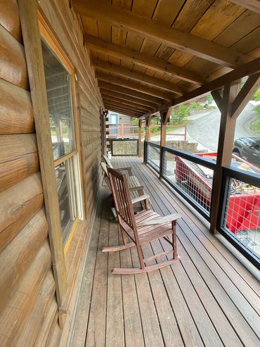 After the January 2023 with more updates at Fireflies & Moonshine Cabin with our partners at TK&B Renovations and Remodeling shown above, in the fall we decided to add modern touches at Five Bears with new deck railings, new exterior doors, and new deck lighting!
