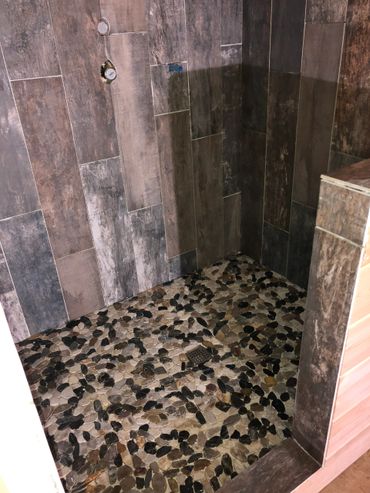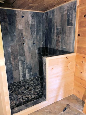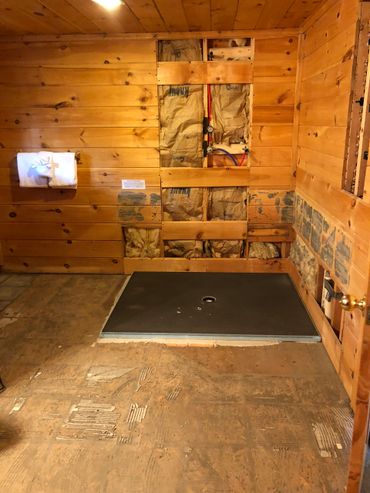 We began discussing this project in 2014. I don't remember if our discussions waited until after we purchased the cabin or if it was during our first walk-through. Either way, we knew the tub (no shower) wasn't ideal and there was a better way to use the space! As we completed many smaller projects, our network of specialists, contractors, handymen, etc grew. We discussed it more and more with everyone we met. Lots of positive comments and suggestions, but everyone knew it was a big project. Finally in 2017 after we had updated living room furniture, replaced the last of the beds, and did some maintenance under the cabin, we decided 2018 was the year for BIG THINGS! On January 2nd we requested proposals for granite counter tops and started sourcing shuffleboard tables. Both were installed before the end of January. We also noticed the cabin was booking faster for the year than it had the previous 4 years, so we decided that if we are going to remodel the bathroom, we need to get it scheduled asap! During the granite counter top install, we met with a few contractors to look at the space. A week or so later after reviewing the proposals, we selected TK&B Renovations and Remodeling to move forward with. Jan and Daryl really understood our vision and created a great space we know guests will enjoy!
