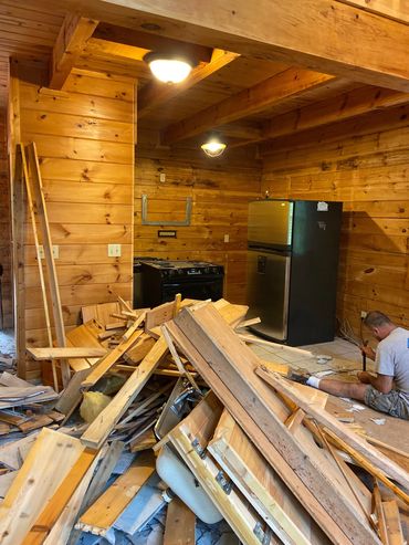 We had our eyes open for a 3rd cabin and knew we wanted to stay in our resort as there are certain things that make sense for us - city water, sewer, underground electric, wired for cable, and close proximity to our other cabins. We found one that met most of our criteria. On the surface, it looked like it needed some TLC and updating, but as we visited the property, reviewed our options with contractors and specialists, we realized it needed a big effort if was going to have our brand on it. What you'll see below are before, during, and after pictures.